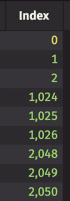 The row index allows users to pinpoint certain values within an array. Within a query, square bracket operators get an element from the array based on the row index. For example, Sym_ creates an array, and Sym_[ii-1] uses the index to go one row back, or get the Symbol value in the previous row. Sym_[ii+3] creates an array, and then gets the Symbol value three rows ahead of the current row: