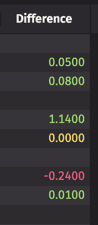 t=t.update("Difference = (Sym=Sym_[ii-1]) ? Price-Price_[ii-1] : null")