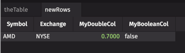 When the table loads, it still has two rows. However, the value in MyDoubleCol has changed from 0.8 to 0.2.