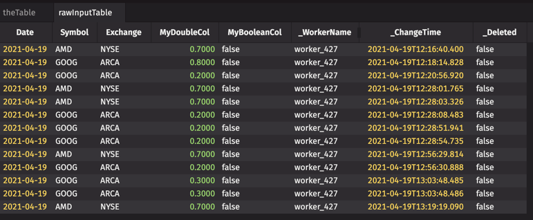 The raw data creates an audit trail for the Input Table, and tracks any changes made. rawInputTable shows the rows added, edited, and deleted in the examples above.