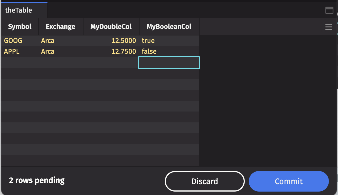 Click the Commit button at the bottom of the table to save pending changes, or the Discard button to discard pending changes.