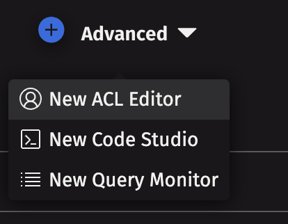 The ACL Editor in the Deephaven console allows authorized users to configure access to Input Tables. To review or edit these permissions, click the Advanced button in the new screen, then select New ACL Editor.