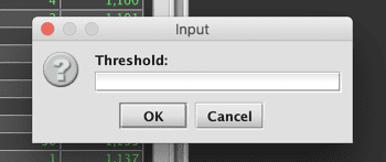 Select Check Threshold. The Input dialog window opens prompting users to enter a value in the Threshold field.