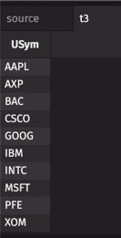This query produces a table with 90 rows: 9 distinct exchange values for each of the 10 USym values.