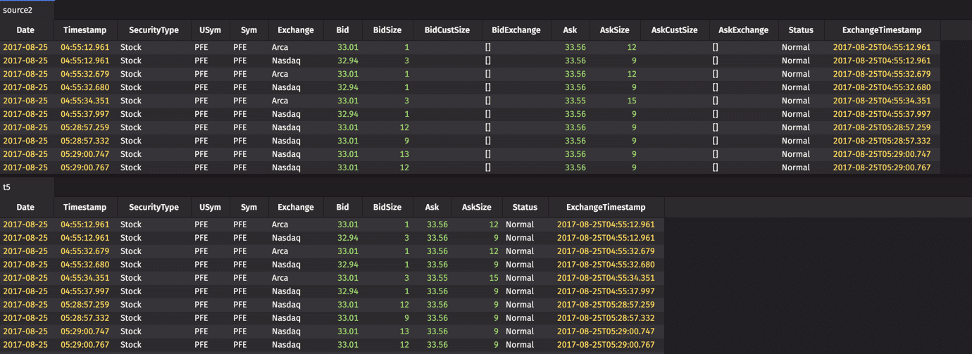 The sections below detail how to use each of these methods in a query, using the following source tables: