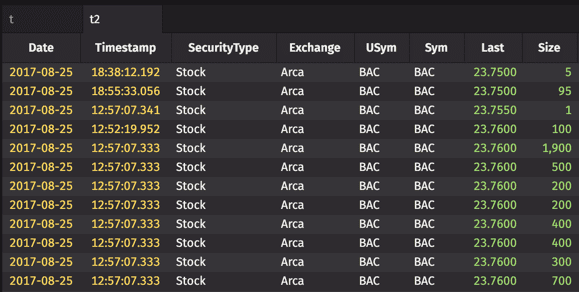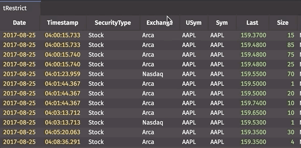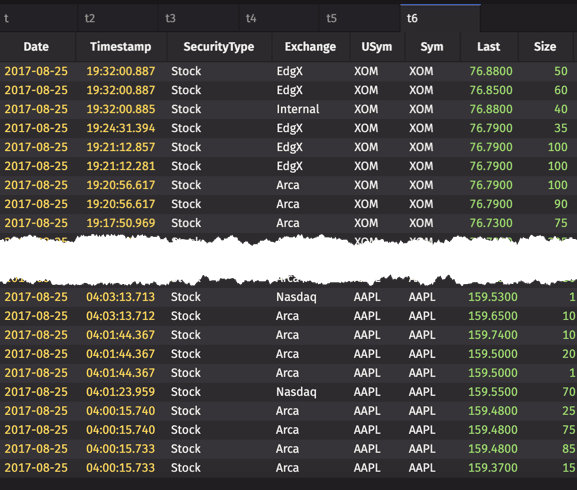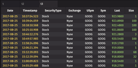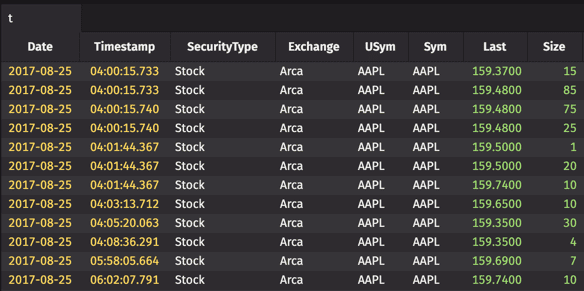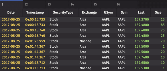 Sort Pairs apply sort orders on different columns within one sort call to reduce computing expense. Using the StockTrades table once again, we can create a Sort Pair that arranges the Exchange column in ascending order, and arranges the Last column in descending order.