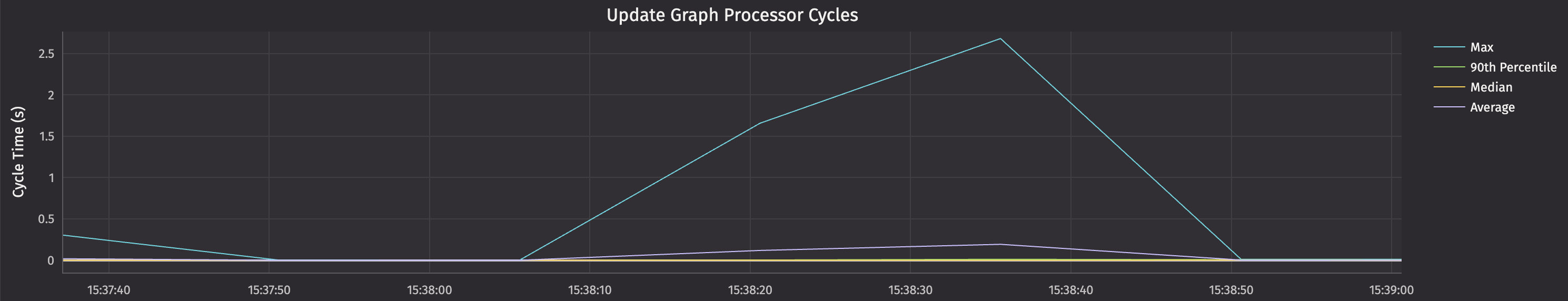 The Update Performance Log is generated by the UpdatePerformanceTracker, which accumulates performance data for UpdatePerformanceTracker.reportIntervalMillis (defaults to 60 seconds). If the Update Graph is processing data, then the UpdatePerformanceTracker cannot generate a report. The length of time that update performance data was accumulated for is reported in the IntervalDurationNanos column. You should expect the value of this column to be between the report interval and the report interval plus the update graph cycle time. As the cycle time defaults to 1 second (configured by the PeriodicUpdateGraph.targetCycleDurationMillis property), typical values are between 60 and 61 seconds. You should monitor the IntervalDurationNanos column to ensure it does not exceed the report interval plus the target cycle time. If it does, it's a sign that cycle times are longer than expected.