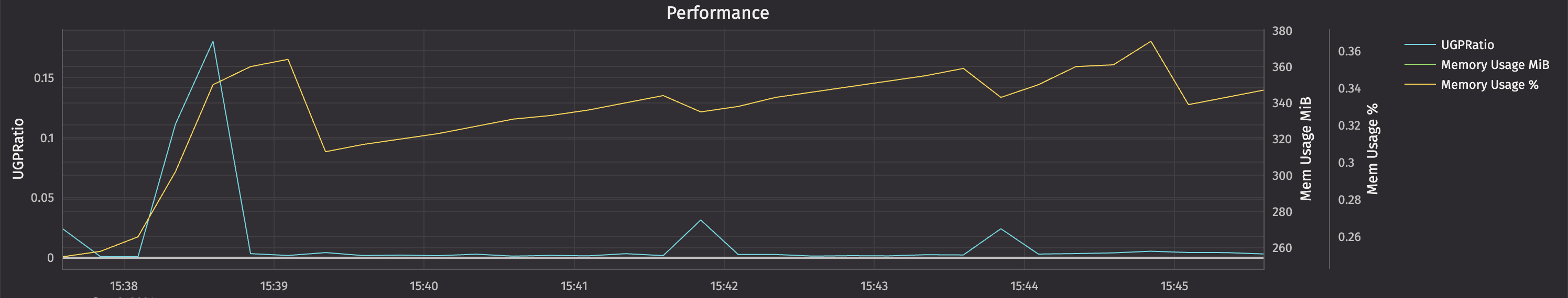 This table aims to show details about memory usage, Garbage Collection (GC) and Update Graph (UG) cycle count, durations, and ratios.
