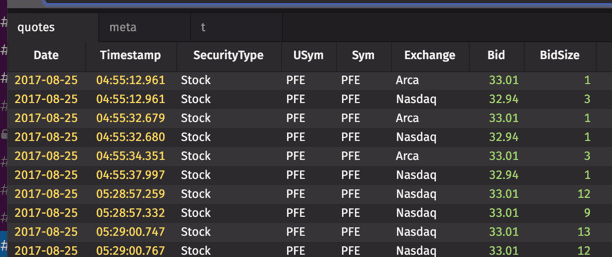 The DBDateTime variable common in the timestamp column includes both the date and time (e.g., "2020-06-08T12:00 NY"). However, the UI may be set up to display only time. For example, the StockQuotes table in the LearnDeephaven namespace opens as shown below: