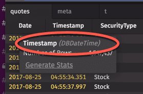 The Timestamp column displays only the time. However, this is actually a DBDateTime. You can determine this in one of two ways: