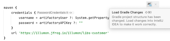 Next, add the following Maven repository with your credentials. artifactoryUser and artifactoryAPIKey