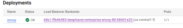 The Deployments section lists the Load Balancer Backends: