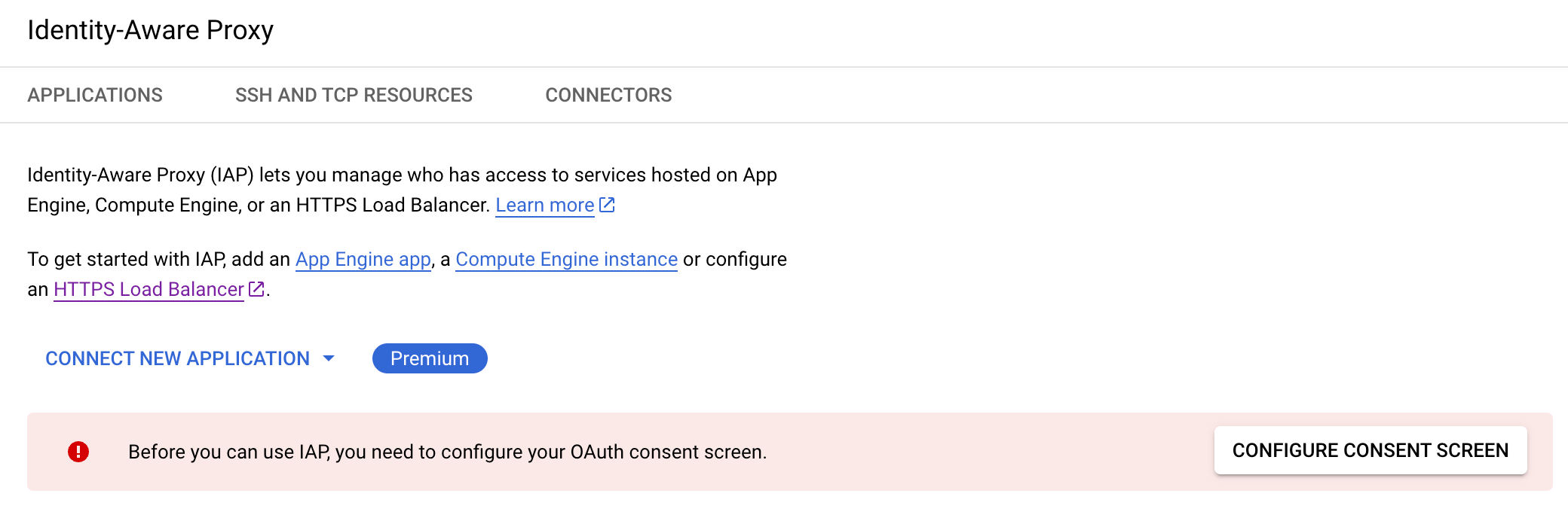Configure the OAuth Consent Screen Once IAP is enabled, you will be prompted to configure the OAuth Consent Screen.