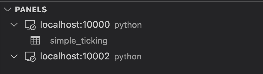 There are three panels in the Deephaven extension. They appear on the left side of the VS Code window below the activity bar.